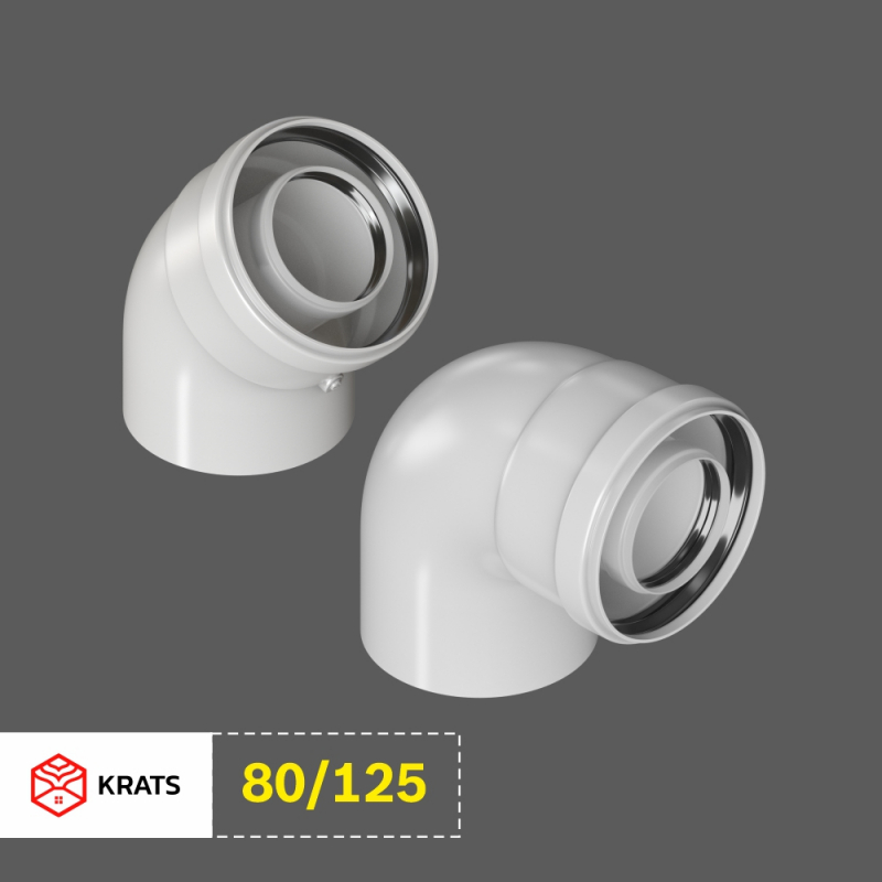 Главная / Дымоходы / Дымоходы для настенных газовых котлов / Колена промежуточные 45° и 90° «папа-мама» 80/125, коаксиальные