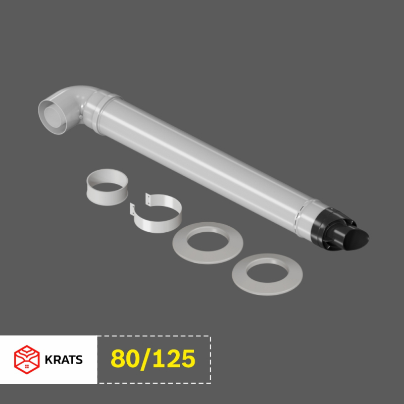 Главная / Дымоходы / Дымоходы для настенных газовых котлов / Комплект коаксиального дымохода 1 метр, 80/125, универсальный