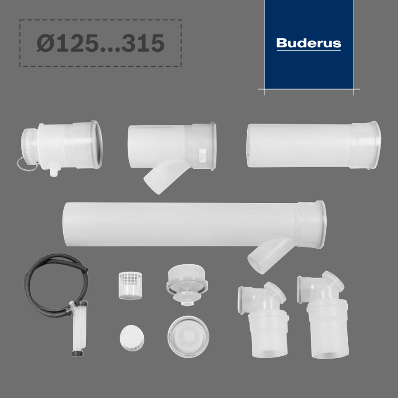 Основной комплект дымоудаления с обратным клапаном для каскада из 2 котлов в ряд Buderus (Германия)