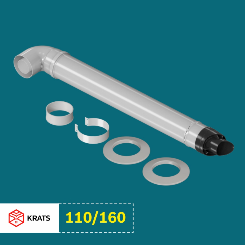 Главная / Дымоходы / Дымоходы для настенных газовых котлов / Комплект коаксиального дымохода 1 метр, 110/160, универсальный