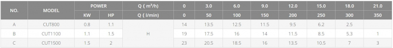 Насосы CUT специально разработаны для перекачивания неочищенных сточных вод из бытовых, коммерческих или муниципальных источников. Высокое давление нагнетания позволяет перекачивать сточные воды на большие расстояния. Насос может легко разрезать смесь волокон в воде, например: перчатки, веревки, ткань. Не имеет намотки и не имеет препятствий. Он также может снизить потребление энергии и свести к минимуму затраты на простои, сохраняя при этом максимальную производительность в течение всего срока службы системы.