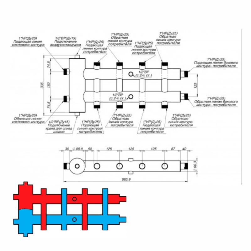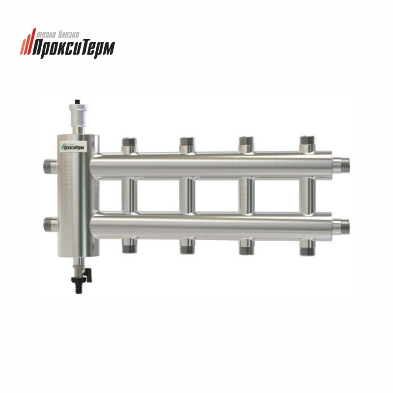 Коллектор распределительный с гидрострелкой GSK 25-5 ЭКО AISI 201 Proxytherm (Россия) 5 контуров + крепеж стеновой