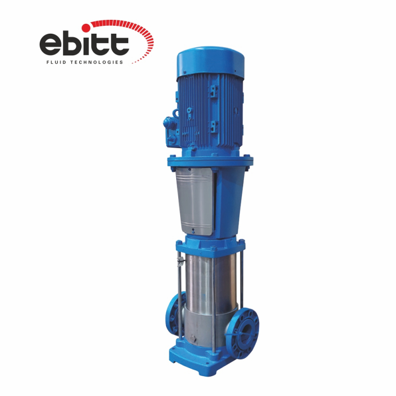 Вертикальный многоступенчатый насос MVS Ebitt с рабочей камерой и рабочими колесами из нержавеющей стали AISI 304, фланцы из чугуна. Насос используется для перекачивания, циркуляции и повышения давления холодной или горячей чистой воды. Всасывающие и нагнетательные патрубки имеют равный диаметр от DN50 до DN100 и находятся в одной горизонтальной плоскости (конструкция «ин-лайн»). Линейная конструкция патрубков обеспечивает насосу компактность, позволяет устанавливать насос при ограниченном монтажном пространстве.