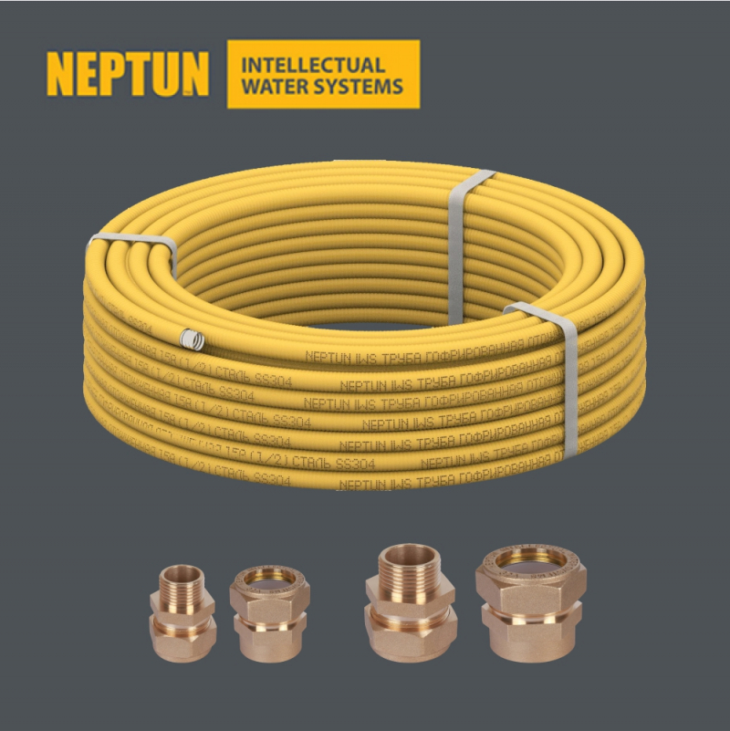 Шланг гибкий для газа Neptun (Россия) отрезной и фитинги. Нержавеющая сталь